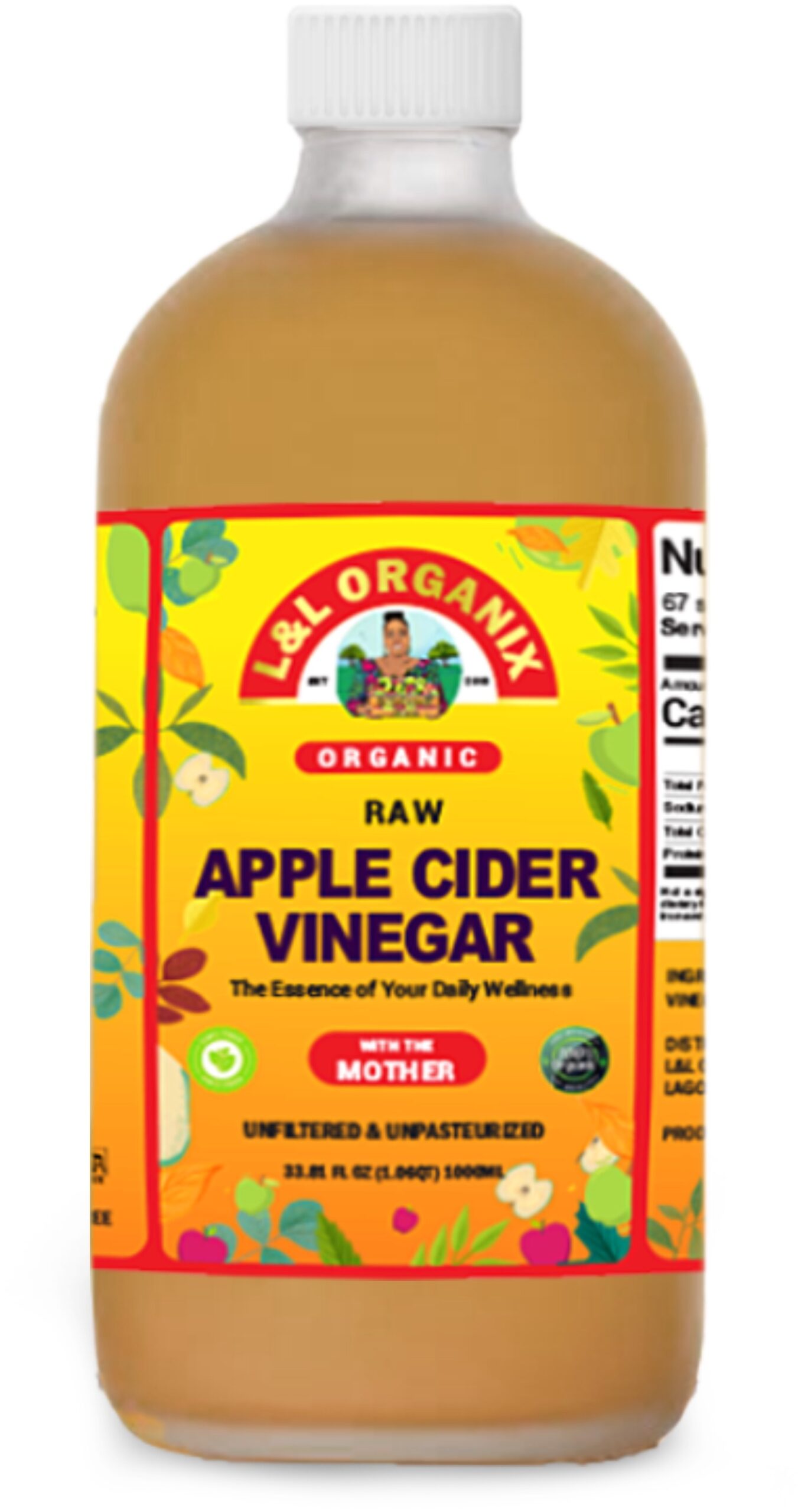 L&L OrganiX Authentic Premium Raw Organic Unfiltered Unpasteurized Homemade Apple Cider Vinegar with The Mother